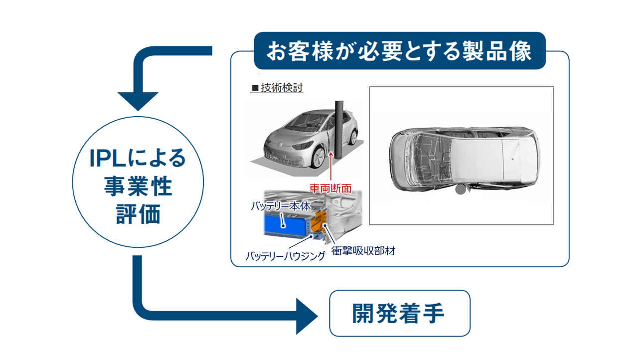 車体とバッテリーハウジングの統合が進むと、補強材の機能が重要になります。従来品よりもエネルギー吸収・生産性・持続可能性に優れた製品像の形を想像し開発に着手しました。