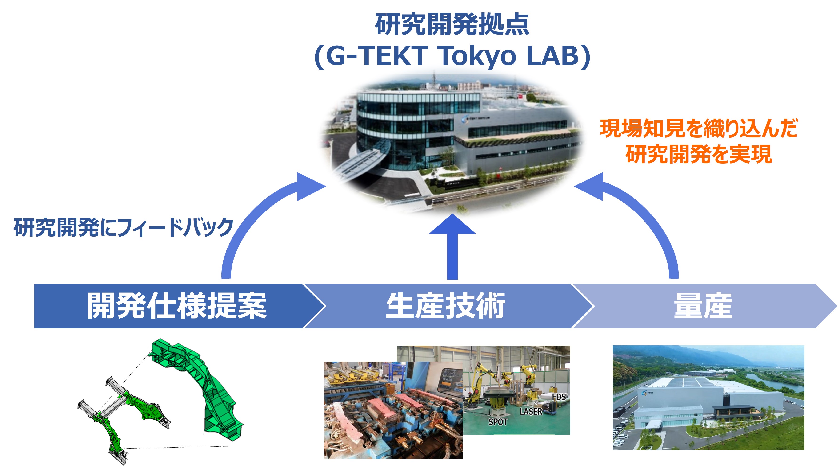 これによって、量産現場での生産性を織り込んだ研究開発を実現しています。