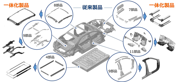 We are developing large modular products for vehicle bodies. By integrating multiple components, we reduce the total number of parts, streamlining processes for both automobile manufacturers and our own operations. These products offer various advantages, including weight reduction and lower CO2 emissions.