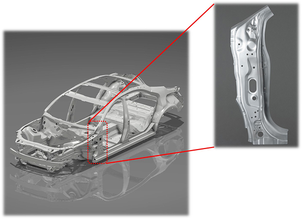 As tensile strength increases, metal forming becomes more challenging; nevertheless, we have established advanced metal forming technologies for components made from 1.5 GPa-class ultra-high-strength steel (UHSS), enabling us to achieve lightweighting and enhanced crash safety while maintaining consistent quality.