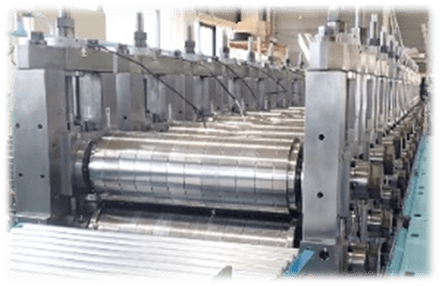 Roll-forming is a process in which material is gradually shaped by passing it between continuous upper and lower forming rolls . This method makes it possible to create cross-sectional shapes that are difficult to achieve with press forming.