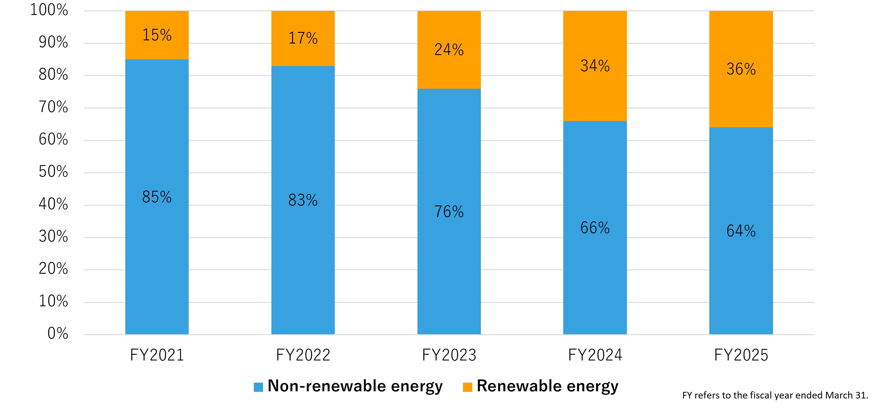 * We are revising our past reports because we have recalculated the proportion of renewable energy sources to account for the low-carbon electricity we purchased.