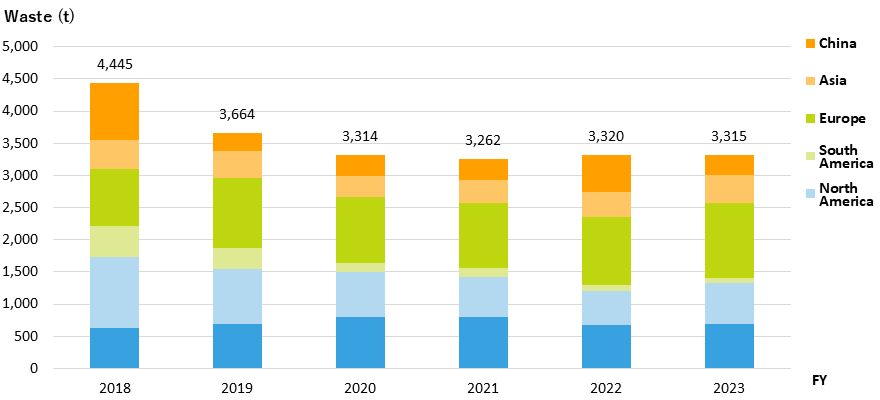 Note: The amount of waste consigned for a fee is not known for certain bases in China for fiscal 2019.