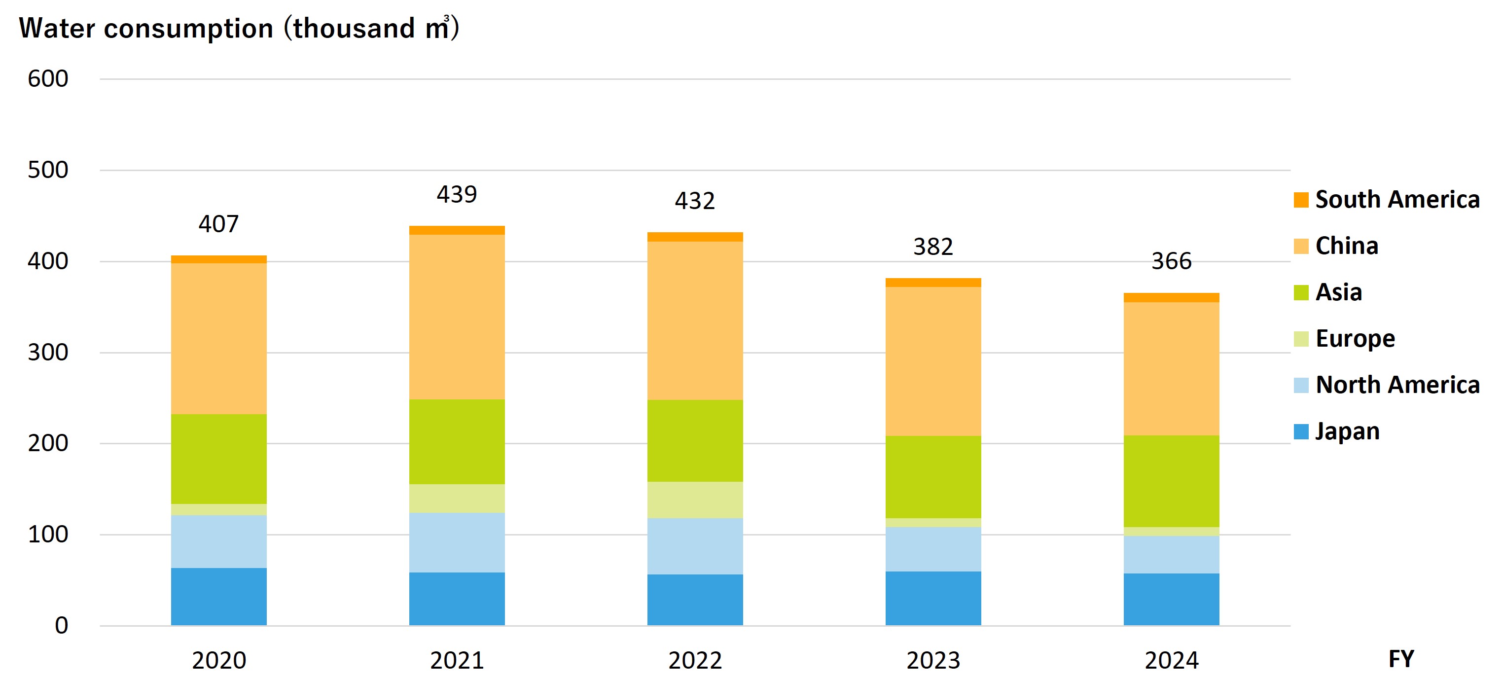 Calculation method: Amount used = Σ (Amount purchased from water supply facilities + groundwater intake)
