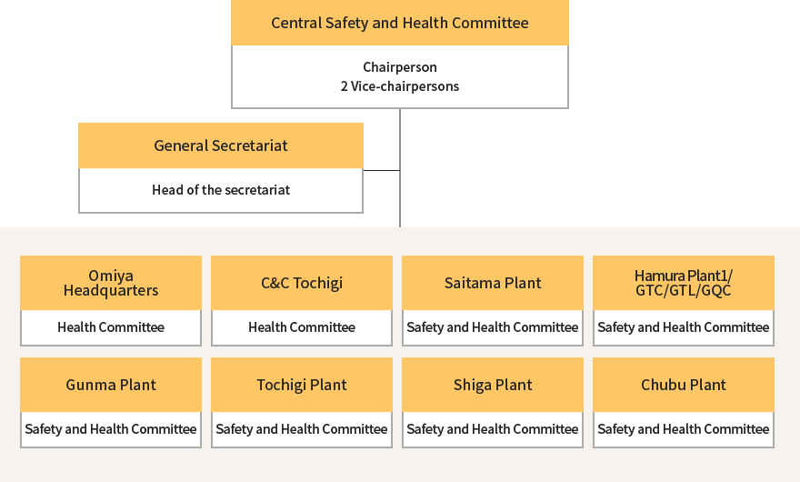 - Efforts shall be made to further manage safety and health in compliance with the relevant safety and health laws and regulations, and internal standards.