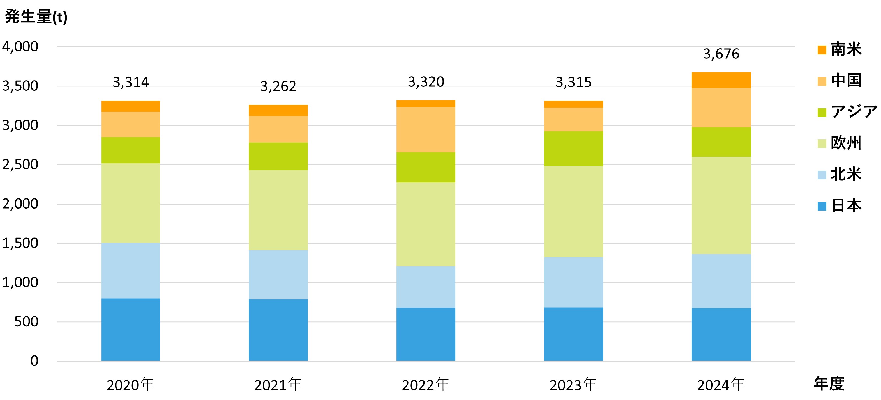 ただし、日本以外は有償処理委託をしている廃棄物発生量