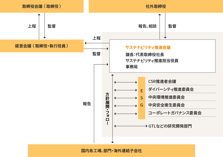 当社は、事業活動を通じて社会課題を解決し、持続可能な社会の実現に貢献することを重要な経営課題と認識しており、SDGsの達成に向けた体制を構築し、取り組みを推進しています。社内委員会でのサステナビリティ関連課題を横断的・総合的に統合するため、サステナビリティ推進会議を設置し、代表取締役を議長として年一回開催します。サステナビリティの観点から、事業におけるSDGsの目標とのギャップを認識し、目標達成への貢献度を測定し、情報を開示してまいります。
